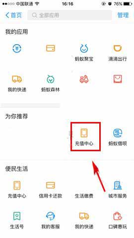 1)首先我们先打开【支付宝】,然后来到首页找到【全部】,接着再找到【充值中心】。(如下图)