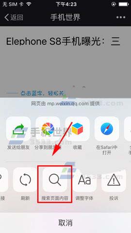 1)我们打开微信来到阅读的文章点击右上角的【三个点】,接着再点击【搜索页面内容】。(如下图)