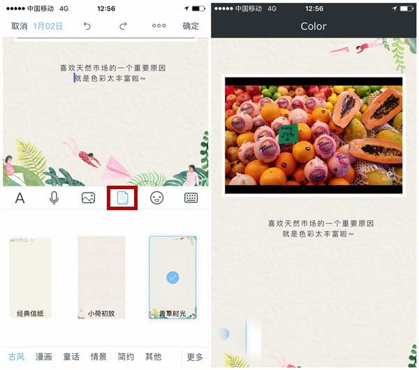 5、印记云笔记每周更新的精美信纸非常受欢迎,有古风、漫画、情景、简约多种风格。点击“信纸”按纽,进入信纸库即可使用,而且选中可以即时预览哦。如果钟爱某一款也可以设为默认模板。大家可以多多尝试~选择好了信纸模板,点击保存笔记,一条图文并茂的笔记就写好啦!