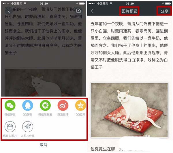 7、有些笔记适合自己看,有些笔记是乐于和朋友分享的。此时可以点击右上角的“分享”按纽,可以直接以网页形式分享给微信好友、QQ好友,及微信朋友圈、新浪微博和QQ空间等社区,还可以以图片分享或者直接保存为图片,对于那些字数图片数限制的朋友圈或微博,将长笔记直接变成图片分享,真是方便实用!