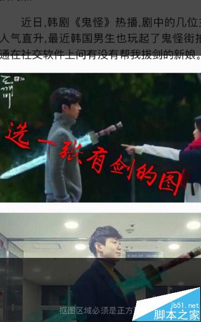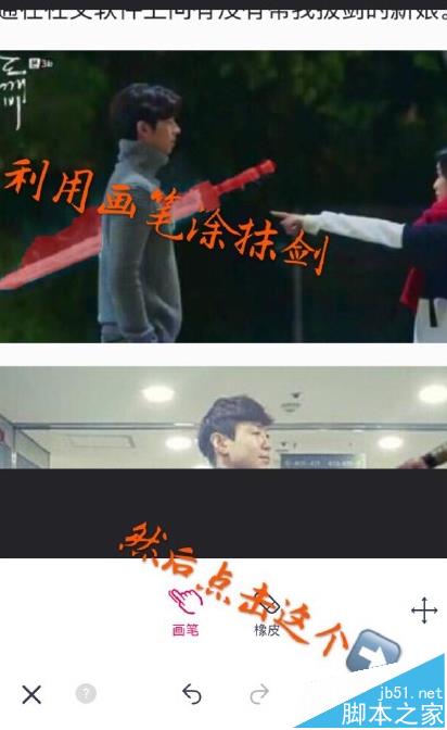 3、进行选择抠图是正方形的,利用画笔涂抹剑