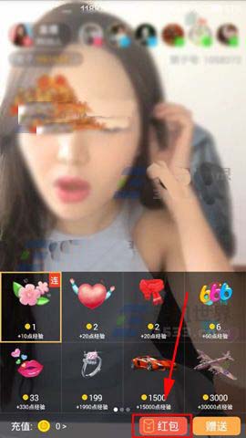 1)首先打开栗子直播【点击】进入直播间,进去后点击下面的【礼物盒】。(如下图)