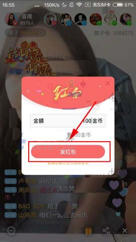 2)接着再点击【红包】,然后输入要发的金币金额点击【发红包】即可。(如下图)