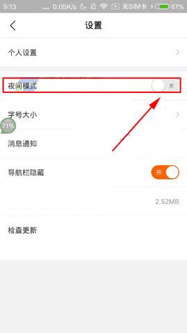2)然后找到夜间模式点击旁边的【按钮】即可开启。(如下图)