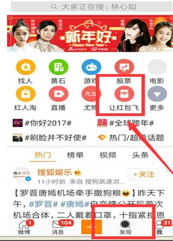 2、在首页选择“发现”,然后选择“让红包飞”。