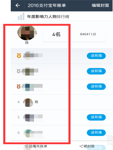 4、将年账单向下拉,你可以看到年度影响力人物排行榜,你可以看到你在所有好友中年度影响力排名情况。