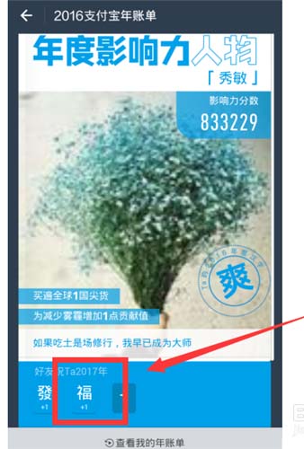 支付宝今日推出了大家期待已久的2016年账单,小编惊奇的发现2016年账单支付宝温馨的为大家制作了封面,还能给我们的好友送上祝福哦,下面小编就来为大家说下如果为好友送上2017年的祝福吧。
