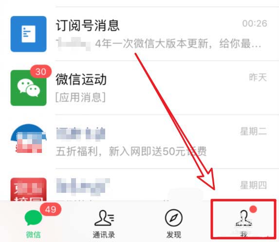 1、我们解锁手机进入微信应用后,选择下方的“我”进入到个人中心界面。