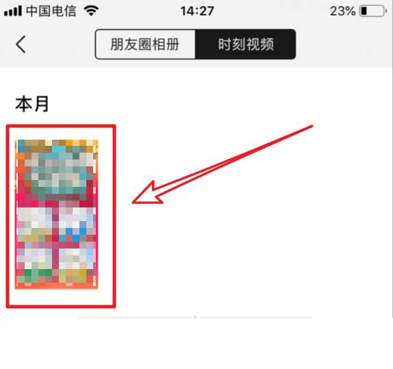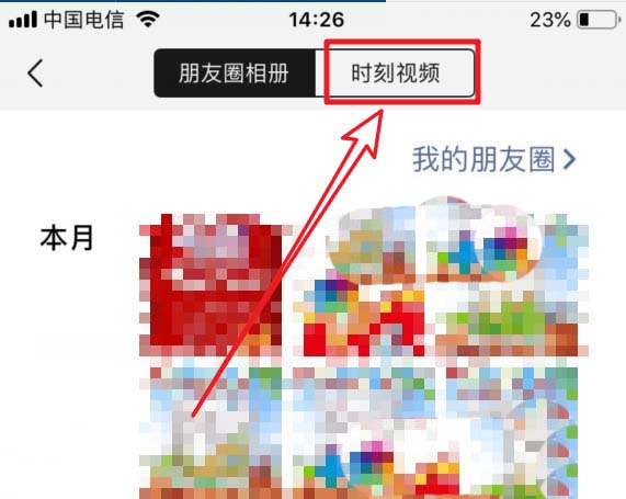 3、进入后,默认是选择的朋友圈照片,我们点击上方的“时刻视频”切换到视频界面。