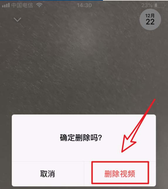 7、点击删除后,页面会弹出确定删除的对话框,我们再次点击确定删除就可以删除自己拍摄的时刻视频。删除以后,是无法恢复的。
