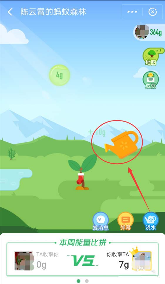 3、打开好友的界面,点击【浇水】图标进行浇水,需要给好友浇水10次哦,补充:可以选择不同的好友浇水呢