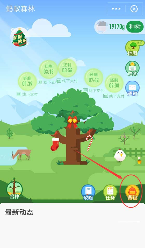 6、返回蚂蚁森林首页,点击【背包】图标