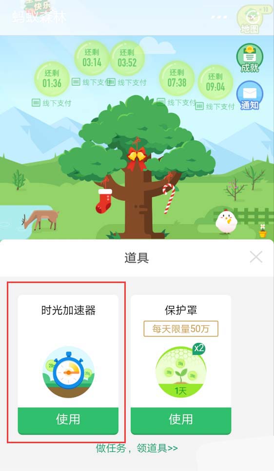 最近支付宝蚂蚁森林中新增了时光加速器,这是什么道具该怎么使用?蚂蚁森林可以通过每周给好友浇水10次,就可以获得时光加速器道具哦,下面我们就来看看详细的使用教程。