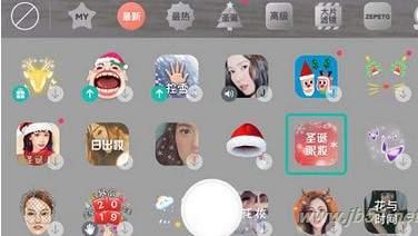 3、点击进入“贴纸”,有很多各种各样的特效“贴纸”,在最新的中看到“圣诞眼妆”特效。