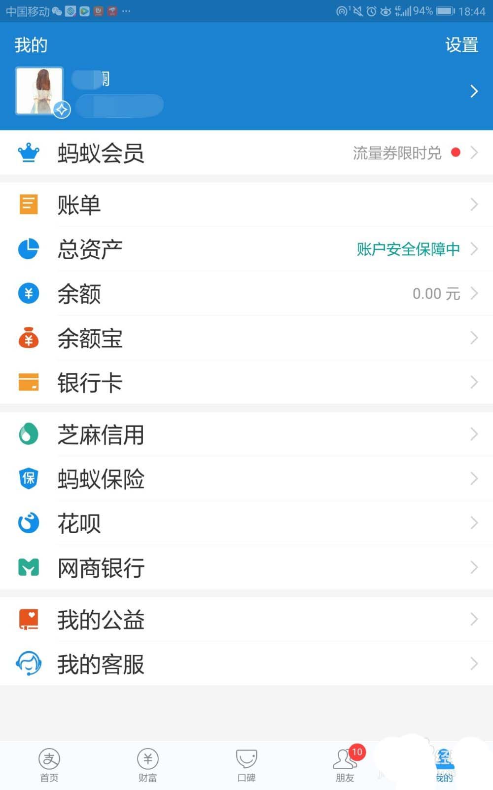 3、然后,在支付宝的个人页面,我们点击头像下的“蚂蚁会员”。