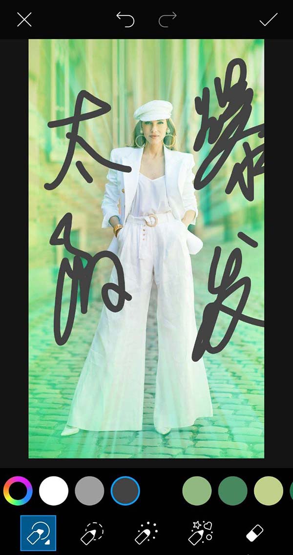 5、接着选择画笔工具,设置文字颜色,在照片上写上文字内容。