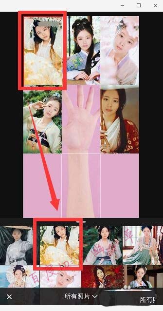 3、点击一下宫格,在下方挑选自己相册的照片,总共添加五张照片。