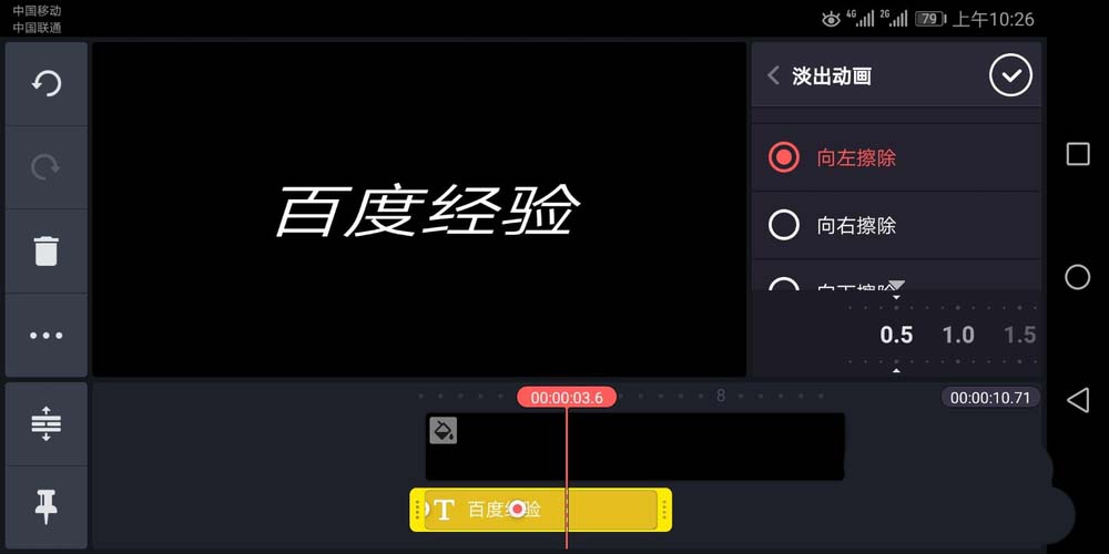 5、设置淡出动画,这里选择向左擦除动画,时间为0.5秒。