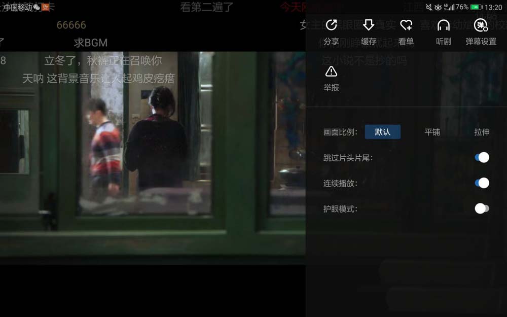 4、进入后,如果是竖屏的情况的话,你可以直接点击右上角的三个点,在弹出的页面中,点击“听剧”即可进入听剧模式。