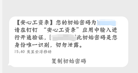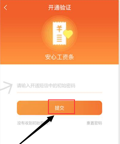 2、在工资条界面中,提示首次进入工资条页面需要输入【初始密码】。这个初始密码需要在第一次发工资的时候,会随着短信一同发到手机当中的。
