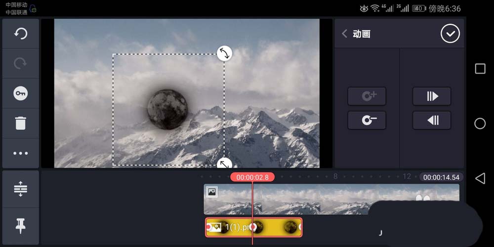 3、将背景图拖拽长一些,接着点击圆月轨道,点击左边的钥匙标志。