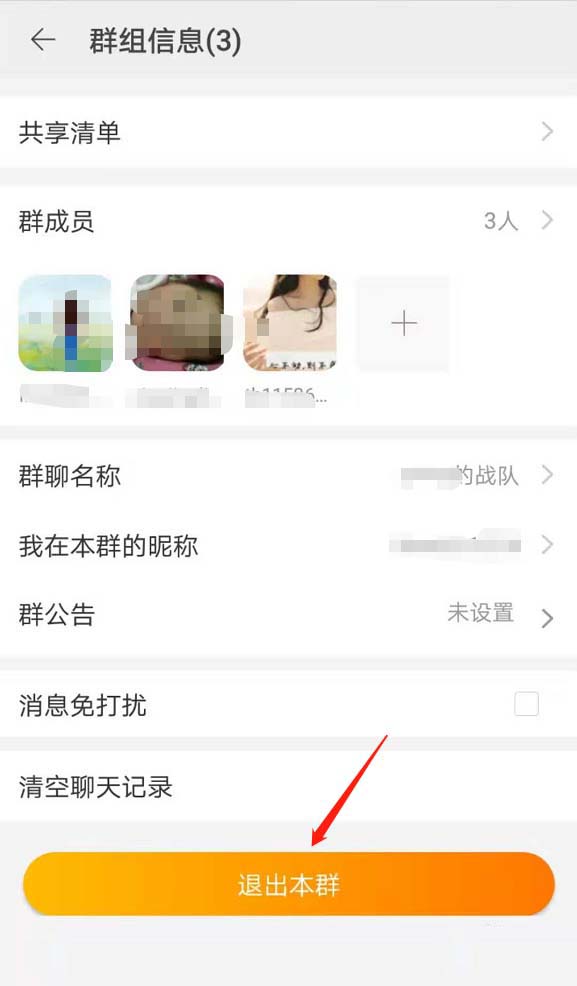 5、在当前的组队群组信息中,就可以看到最下方的退出本群按钮了,点击该按钮