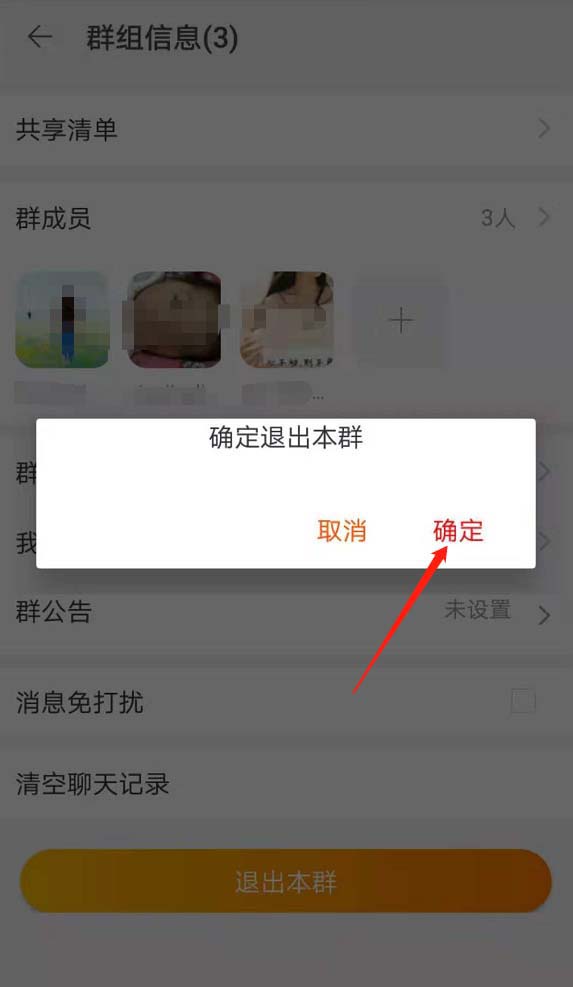 6、页面会提示是否退出该群组提示,点击确定按钮即可