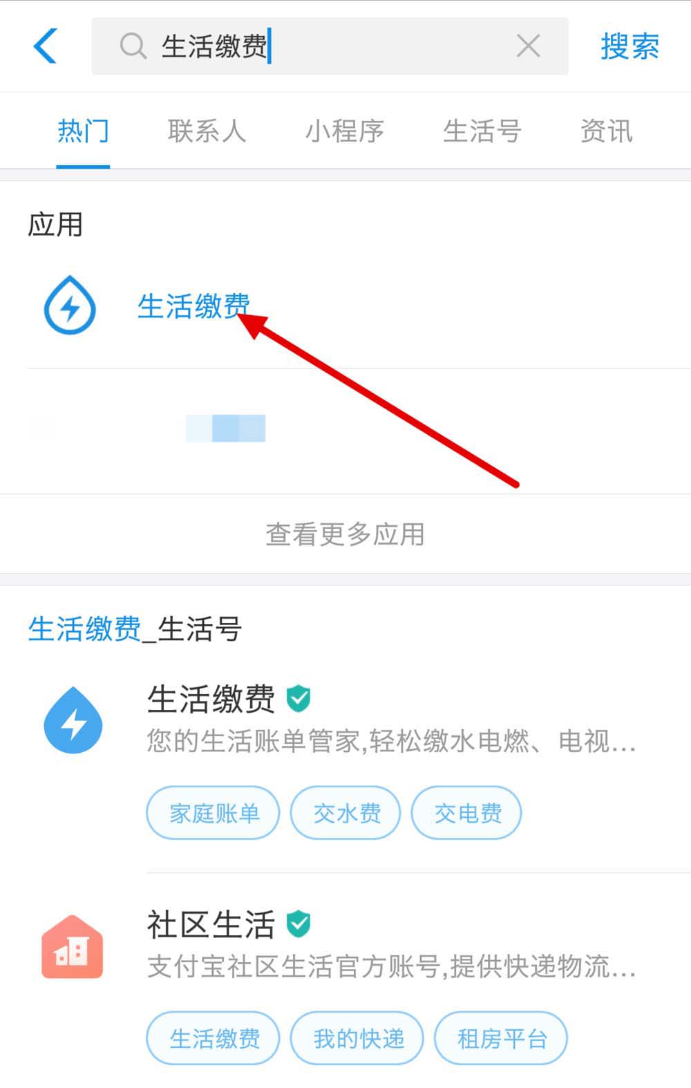 3、或是在上方搜索框中输入生活缴费,点击搜索也可以。