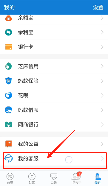 1、打开支付宝,在首页点击右下角“我的”,随后如图点击最下方“我的客服”。