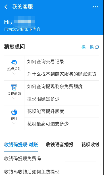 2、如图在我的客服界面一直往下翻,找到并点击箭头所指“在线服务”。