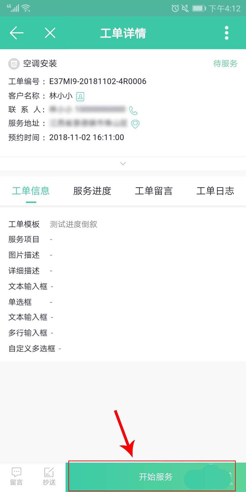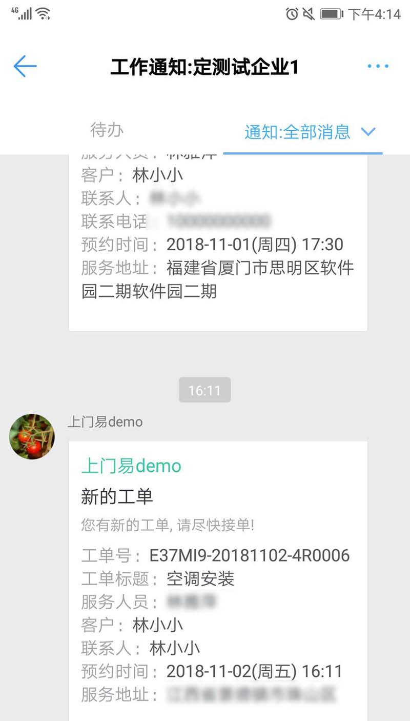 5、服务人员在钉钉收到消息后,点击进去开始服务。