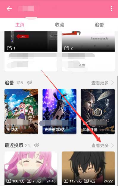 5、现在我们将页面拉到最下面,点击最近投币后面的【查看更多】