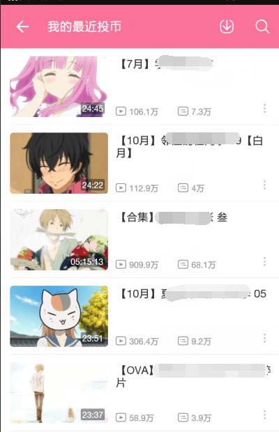 6、点击之后我们就可以看到我们投过硬币的视频列表啦