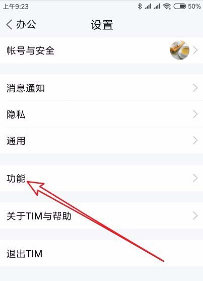 4、这时就会打开TIM的设置窗口,在窗口中我们找到并点击“功能”菜单项。