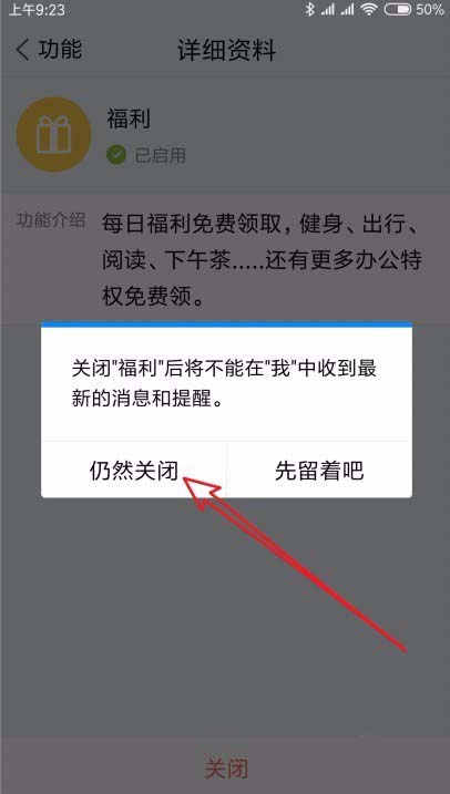 7、这时会弹出一个确认关闭福利标签的提示,点击“仍然关闭”按钮就可以了。这样就关闭了TIM的福利标签了。