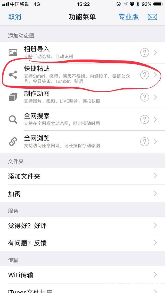 4.选择【快捷粘贴】,可以将同一条微博的多个动图同时导入
