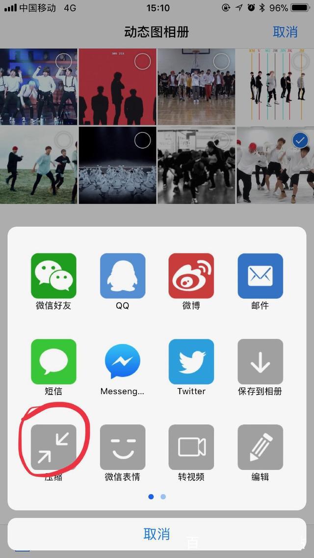 5.选择你需要的动图,点击左下角,选择【压缩】