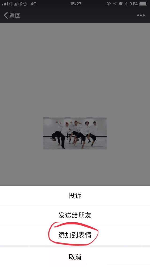 7.点击【分享】,即可以以最合适的尺寸最清晰的分辨率将动图发送到微信里啦!点开发送的动图,添加到表情即可。