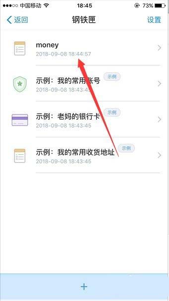 5、验证成功,进入钢铁匣备忘录,上面有示例可以查看编辑范本,然后点击下方的+号