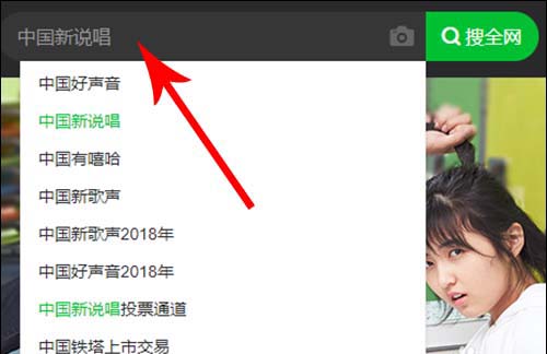 2、进入到爱奇艺首页后,点击页面顶部的搜索栏,搜索“中国新说唱”