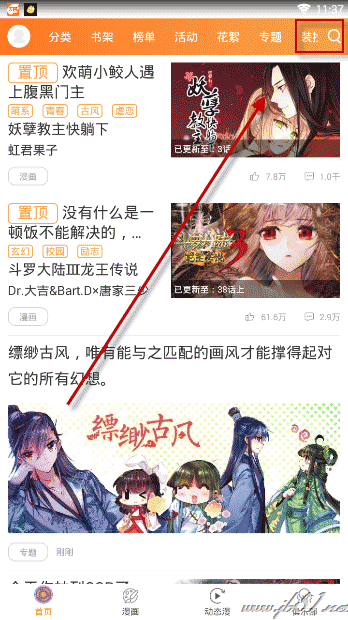 1.打开天唐动漫APP,点击右上角搜索按钮