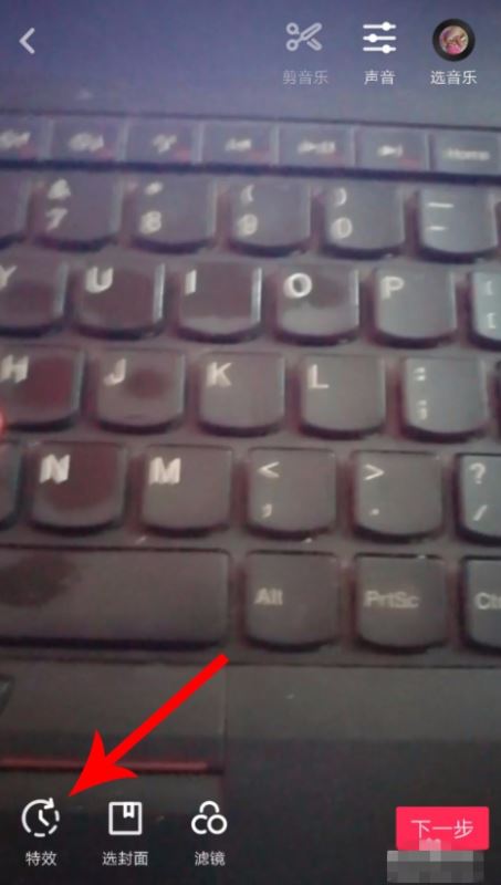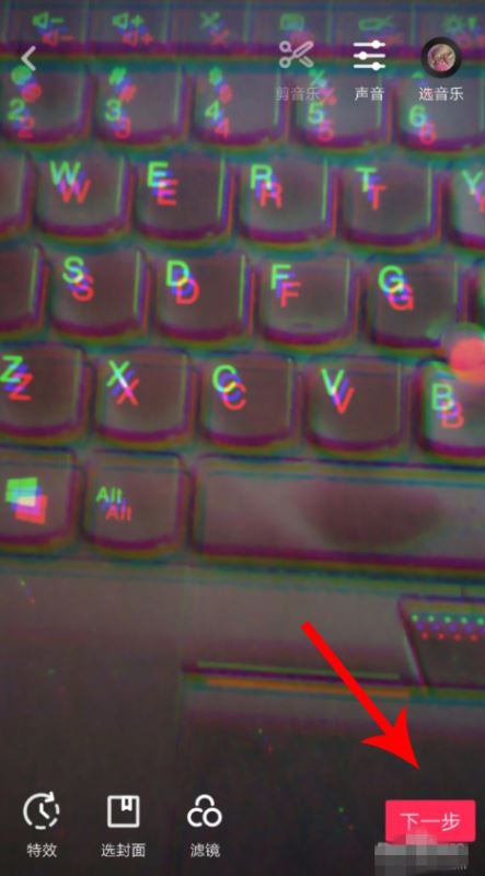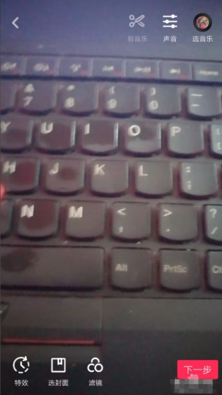 下面就以拍摄电脑键盘为例,可以清楚的看到抖音抖屏的效果,点击拍摄按钮,长按一直拍摄15秒钟,完成抖音视频素材的拍摄,