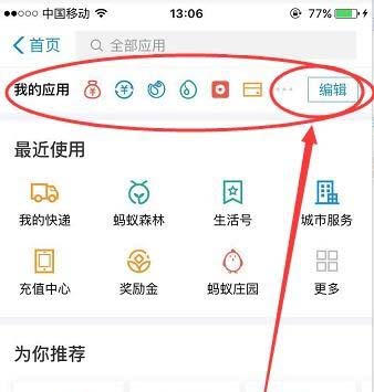 6、如果想要删掉首页不经常用的应用,同样点开更多,在更多页面最上面我的应用后面,点下编辑,如图