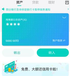 若您点击无卡号显示,请点击活期余额、余利宝、定活宝、随意存、转账等页面,根据页面提示绑定他行银行卡信息,补全后即可查看到卡号。