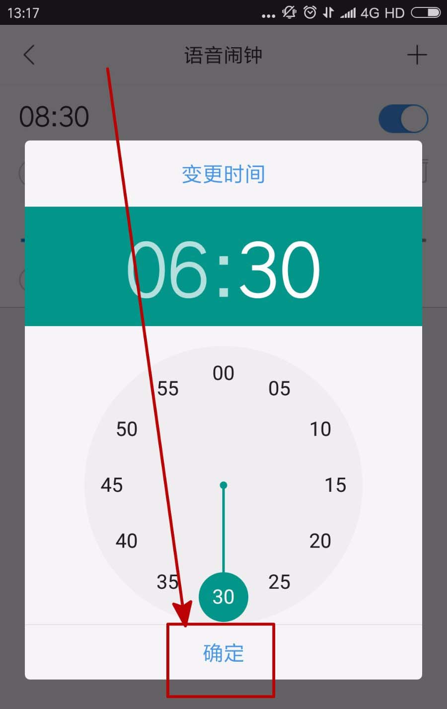 8、设置好时间之后,我们点击下方的确定可以完成闹钟的设置。