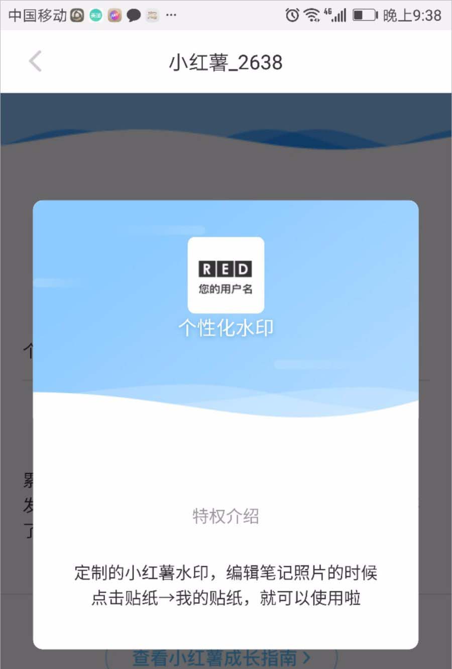 1、等级至少是奶瓶薯。刚刚注册的小红书账号是没有添加水印特权的,只有当您完成一定任务,并点亮小红薯获得奶瓶薯称号后,您才会获得“个性化水印”特权