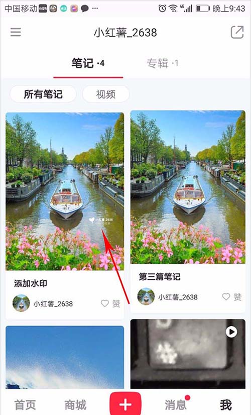 5、对比效果。下图中,左边的笔记是添加水印的,右边的是没有添加水印的,这样便可以通过对比看出添加水印的效果,至此,我们便完成了小红书添加水印的操作。