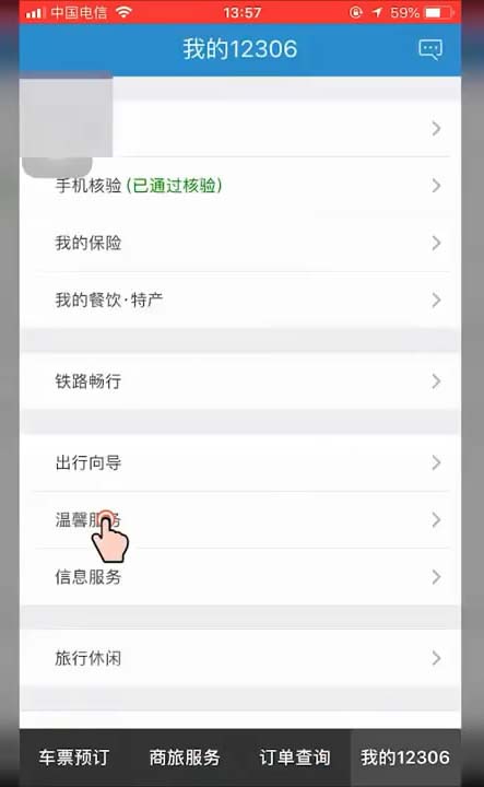 2、在新页面中找到并点击温馨服务选项。