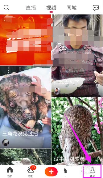 2、进入火上小视频后,点击右下角的我的,如图所示