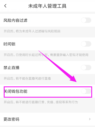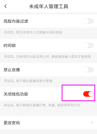 7、未成年人管理,已经设置好,开启后,小孩再也不能打赏、充值、提现等系列操作了,如图所示
